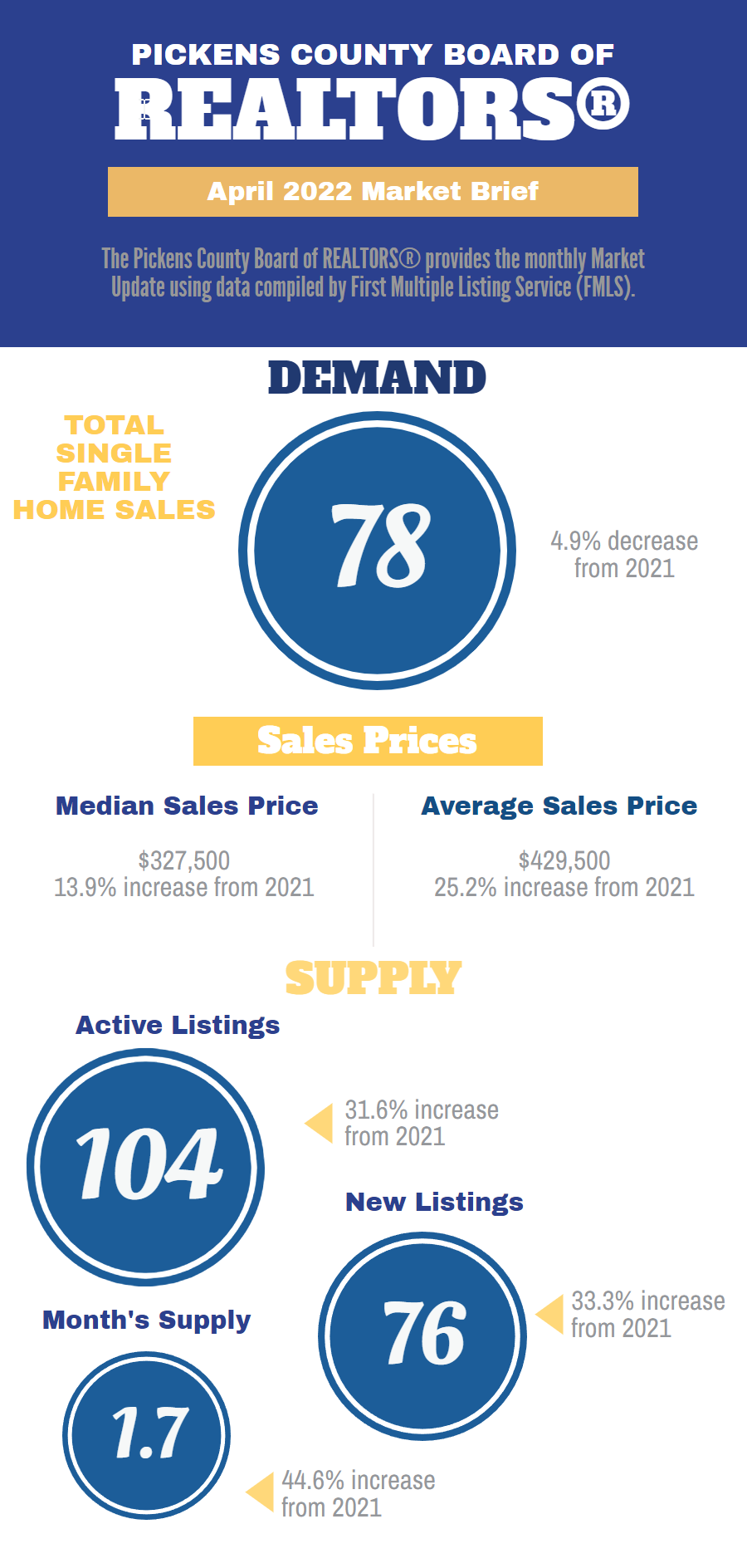 The Pickens County Board of REALTORS® provides the monthly Market Update using data compiled by First Multiple Listing Service (FMLS).