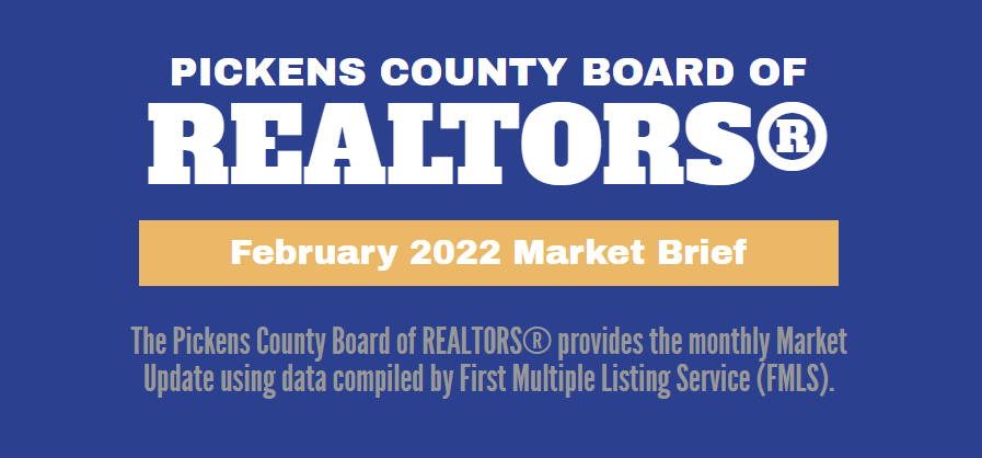 The Pickens County Board of REALTORS® provides the monthly Market Update using data compiled by First Multiple Listing Service (FMLS).